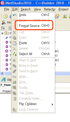 Edit 메뉴의 Format Souce 메뉴을 선택하던지