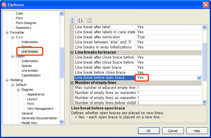하지만 .. 함수 시작이나 if 문 등의 시작 부분에 중괄호 "}"가 새 줄에 붙지 않고