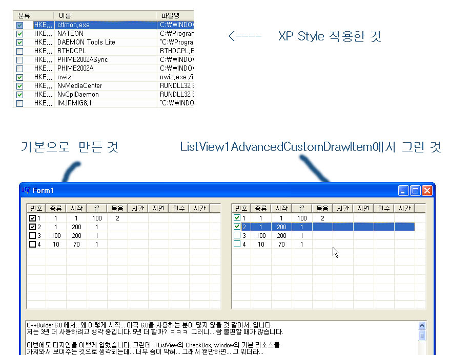 그래서 비슷하게 꾸역꾸역 따라했습니다. ListView1AdvancedCustomDrawItem에서 좀 만지니....