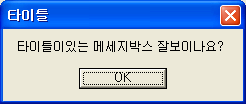 ShowMessage("타이틀","타이틀이있는 메세지박스 잘보이나요?");