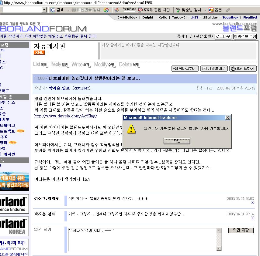 게시판 뛰우고 로긴 안하고 댓글 적으면.....