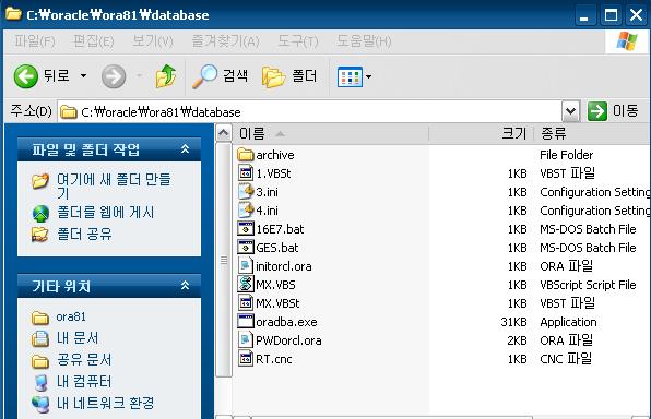 그림을 보니 파일들이 생성된 위치도 오라클 폴더 아래이고요.