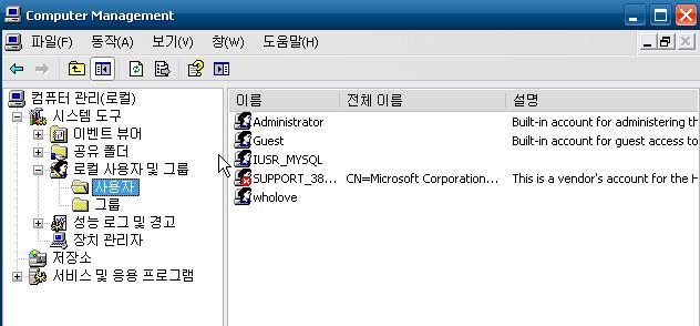 어디서 찾아보니까.."wholove가 여러분의 서버 계정에 올라가 있다면 서버 보안이 뚤린 겁니다." 라고 나오는데....