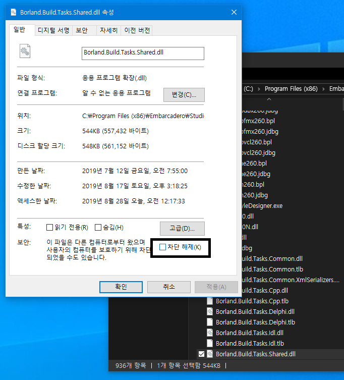 Borland.Build.Tasks.Shared.dll 파일을 선택한 상태에서...